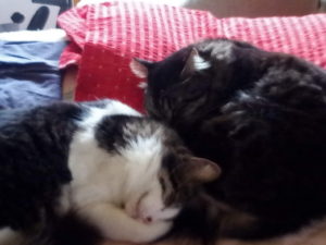 トラ子はカリカリを食べてまた外出。きっとお隣の物置で寝ているのでしょう。福とうめは家で寝ています。うめは最近ブラッシングを要求する様になりました。ドタン!と横になり、撫でて、ブラッシングして~!と言います。