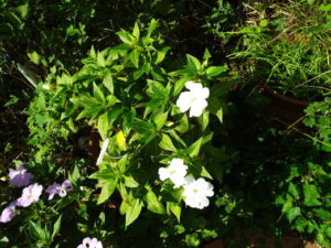 (左)サンパチェンスに食害がなくなったのは虫が雨風で居ないせい?
