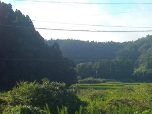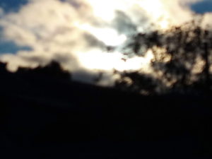 (中)帰り道、丘の向うに太陽が沈もうとしています。