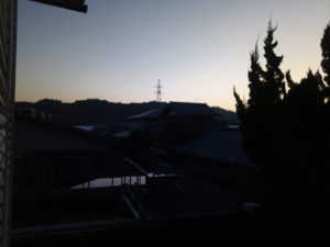 山の向うに太陽が沈みました。本当の日没は17時22分です。お夕飯に韓国式トーストを食べました。