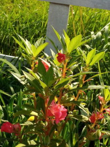 (左)最近珍しいホウセンカの花。爪を染めたりするんですよね。