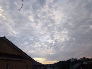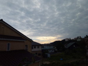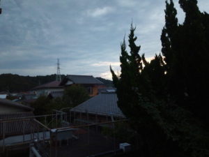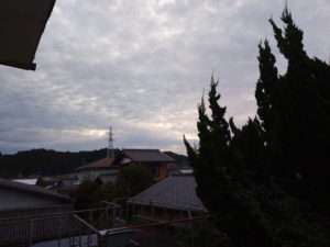 雨戸を開けたら、雨が降っている様な音がしました。何だ、晴れるんじゃないの?昨日、動いて置けば良かった…そう、こうして怠け者は時間を失うのよ。否、小さい雲が北上して行く時に降らせただけ見たいです。動けますよ。