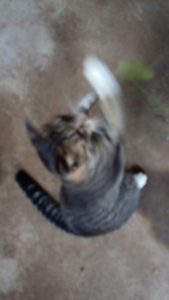 5時半過ぎ、甘えてウロウロしていた福も出掛けました。一階の出口で凄い音がしました。どうやら帰って来たうめと鉢合わせをしたらしいです。丸太ん棒見たいな尻尾になったうめが上がって来ました。5分経ってようやく普通のひょろ長尻尾のうめちゃんに戻りました。『吃驚したのよ~!』