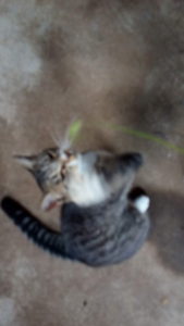 9時前、トラ子と福が昼寝をしていたので、買い物に行って来ました。戻ると二匹は居当番をうめに押し付けて何処かへ行っていました。