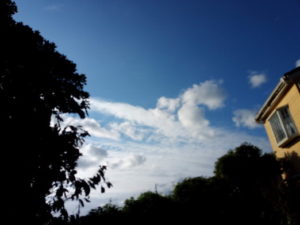 (中)買い物へ行く時はこんな空模様。これは完全に午後には雨ですよね。さっきの青空はどこへ?