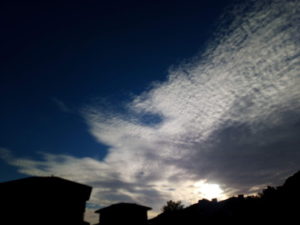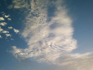 (右)広がるかも知れないですが、一寸弱いかなぁ。綺麗な雲です。今朝は鱗雲が出ていました。明日の雨は荒れるかなぁ。