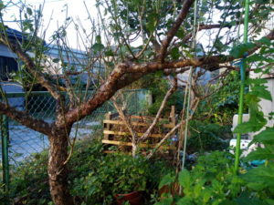 (左)トスカーナバイオレットは実梅の枝に届きました。