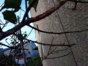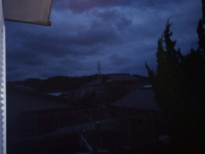 (右)あっ、朝焼け!?東の窓に飛んで行きましたが、灰色の重い空色でした。何故西側だけに?