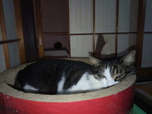 うめ三態!うめはちゅ~るタイム以降、家に居て寝ています。男の仔達は物置でzzz…かしら?