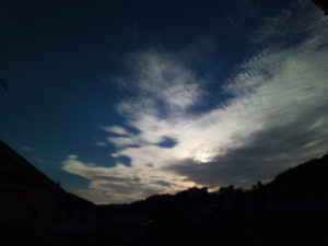 (右)広がるかも知れないですが、一寸弱いかなぁ。綺麗な雲です。今朝は鱗雲が出ていました。明日の雨は荒れるかなぁ。