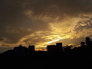(左)5時前、夕焼けが始まりました。既に太陽は岡の向うです。日没は17時3分ですよ。