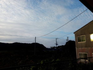 (左)物干しからは鱗雲しか見えませんでしたが、結構大きな釈で東北東へブリッジしていました。只、西南西のエネルギーが強く見えました。8時53分。その後も消えたり、復活したりしながら長い時間ブリッジしていました。