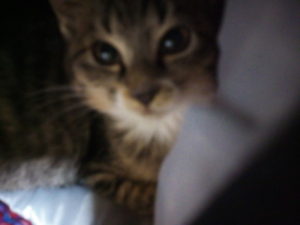 確か22時半過ぎにトラ子が出掛けましたが、多分30―1時間後に戻って来て、枕にピョンと飛び乗って来ました。その前に福が、枕を通過して夜の自分の場所に戻って行きました。話して聞かせた通りに寝ている処をみると、寝場所に関しては理解出来たのかな。