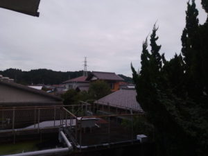5時43分、未だ小雨が時折降っているのか…瓦は乾いているけれど。今日もいつ雨が来ても可笑しくない天気ですね。おたふくさんのプールにはポツポツと小さな円形が生まれ、『雨は降っているよ~』、と教えて呉れます。