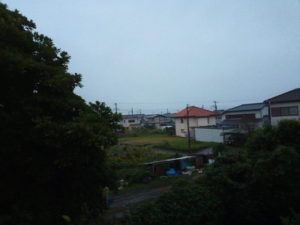 ゆあぱーくさんで買ったレタスを物干しに出しました。雨は止んでいますが、雨雲レーダーによれば、更に大きな雨雲が西から通過するみたいです。
