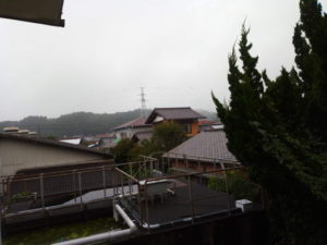 ゆあぱーくさんで買ったレタスを物干しに出しました。雨は止んでいますが、雨雲レーダーによれば、更に大きな雨雲が西から通過するみたいです。