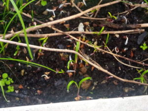 (左)ホウレンソウが続々と発芽しています。隣に見える葉はどうやら韮?葱だと思っていましたが、幅が広くて厚みがあるので、韮かも知れません。