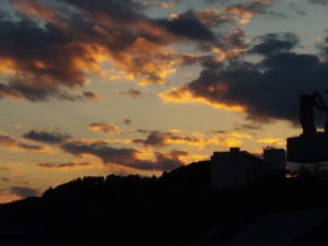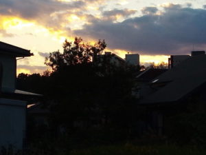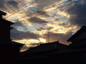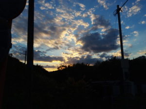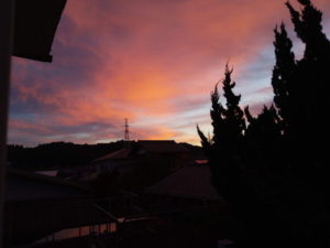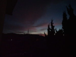 5時17分、未だ暗いのに茜色が見える!いつもなら5時30分過ぎた頃の景色です。これは来る、朝焼けが来るぞ!
