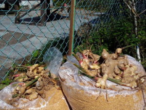 (左)畝の生姜はこれだけでした。プランターの生姜は来月掘り上げます。