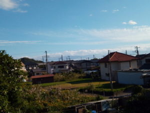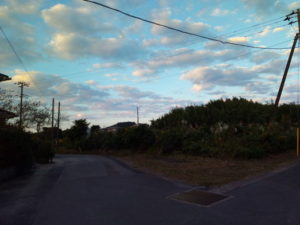 凄く奇麗な空の下、Kさんが毎日のお散歩をしていらっしゃいました。