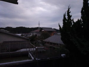 5時41分の空です。福が5時半をかなり回ってからカリカリとジュレを平らげて表に出掛けました。家々の屋根も今日は乾いています。干し野菜を表に出すかなぁ。