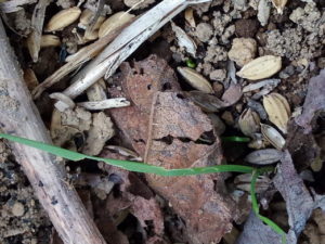 (左)中央通路に面した3畝では韮の発芽が始まっていました。