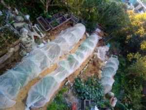 (右)陰で見え難いですが新堆肥枠…これも2月には発酵温床となります。此方も南瓜を植える予定です。