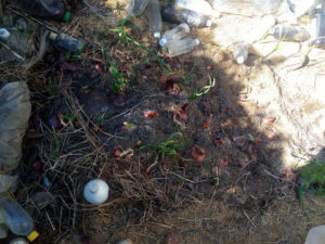 (右)2畝の一番南に今年収穫して食べきれなかった玉葱…一部は既に発芽をしていました…を植えたのですが、発芽したり、葉を伸ばして来ました。