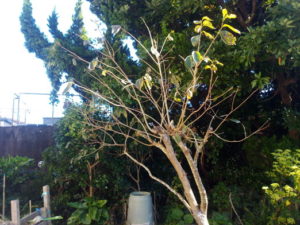 (中)槿三本の剪定をしました。今日は満月ですから植物体のエネルギーは地上の、それも天辺近くに上がっています。本来はもう少し後の方が良いのですが、昨年はそう言って最後までキチンと出来ませんでしたので、早めに着手しました。