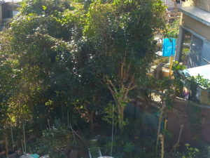 (右)同じ木を二階から見た所です。上に被さっていた薮枯らしはほぼ取り除きました。