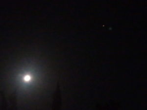 19時36分、金星と一緒に移りました。こんな明るい月ですから、金星くらいじゃないと光で負けてしまいますよね。福は頂いたアラを焼いたものを食べて居ました。アラを焼いたものはサクラさんにもお裾分けしました。