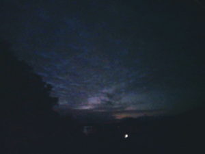 5時56分。朝焼けが始まりましたが、こんな寝惚けた色では無いですよ!
