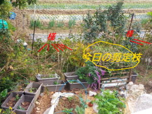 (右)蔦類は後少しだけ。お隣の畑が大分見えるようになりました。
