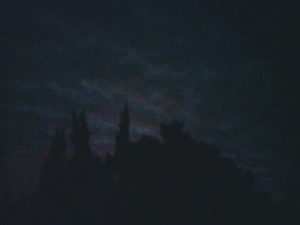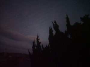 (左)よく目を凝らして頂くと東の空に微かに浮かぶ雲とカイヅカイブキのシルエットが見えて来ます。