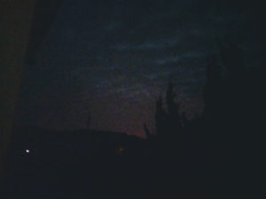 5時44分。鱗雲が扇状に広がったのを撮れる明るさになりました。