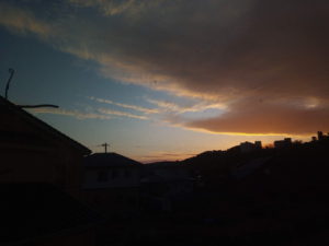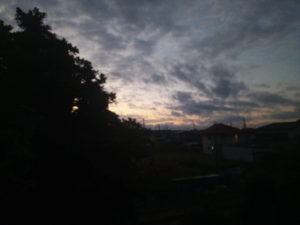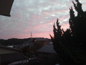 5時56分。朝焼けが始まりましたが、こんな寝惚けた色では無いですよ!