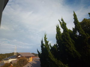 雨戸は開けていたけれど、仏様にコーヒーをお出しして、ふと見た空に鱗雲が扇形に真東に近い所を起点に開いていました。次の高気圧圏は9日月曜日に入りそうですね。9日は水星近日点でもあります。Cフレアも1日以上前に起きています。