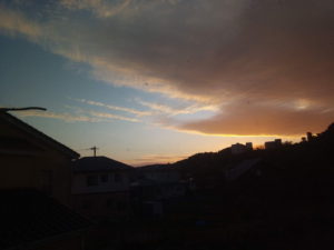 (左)16時29分、方角は東―東南東の間…大体日没30分前には色が着き始めますね。
