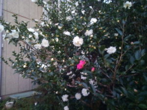 (左&右)山茶花紅が咲きました。いつもより少し早い?