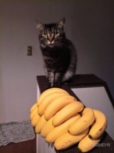 (右)ビビりのトラ子と台湾バナナ…『オカアシャン、この黄色いの気持ち悪いよ~。』