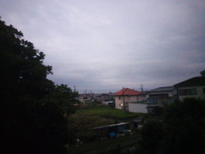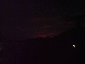 本日の夕焼け・残照は雲が多い為、ありませんでした。真っ暗になってから岡の上の高校のシルエットが暗赤色の背景に浮かび上がっていました。