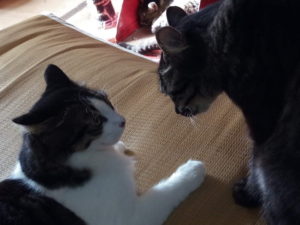 猫仲間では受けの良いトラ子;人間には可愛い、と言われながらも雌雌に疎まれる福。丁度上手くできているのかも。