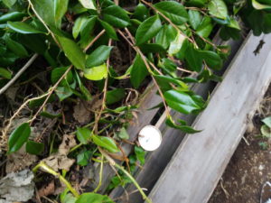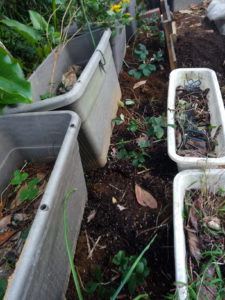 (中)発酵温床脇のパープルシャドウクイーンも茎を倒して発酵温床の土を入れました。