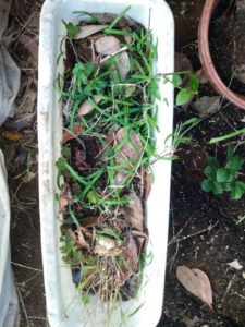 庭は一通り施肥も海水EM活性希釈液を水遣りしたけれど、脇通路や玄関前は未だですよ。その前に苺の移植をして仕舞いましょう。苺のプランターを一つ空け、苺を地植えして見ました。