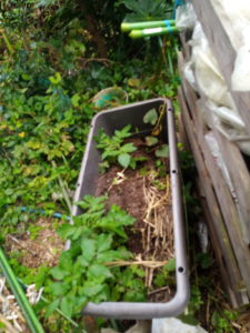 梅の樹の横には一つプランターを運んで小さなメイクイーンジャガイモを10個植えて堆肥を掛けました。此処は数が多いから寝かすのは難しいでしょうね。プランターを合計3つ使って堆肥が流出しないようにします。
