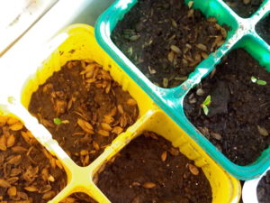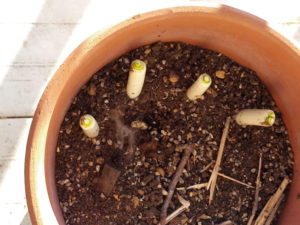(右)ビーツが5―6個発芽をしました。う・れ・し・い・なぁ!