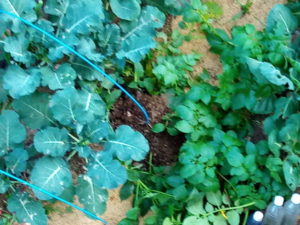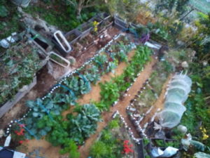 今朝の庭はようやく脇からの通路がハッキリして来ました。ブロッコリーの葉色が濃くなって来ました。玉葱の畝が2―3日前までは米糠の色が優っていたのに、緑色に新葉が出て来たのが色に現れて来ましたね。12月も半ばになれば1畝のネットも外せるかなぁ。楽しみです。