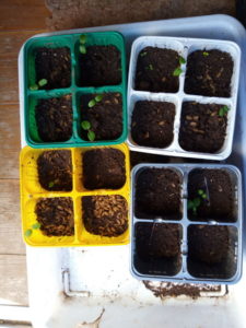 ホウレンソウがどんどん発芽しています。ホウレンソウの緑は人を元気にしますね。これまで何回もホウレンソウを蒔いて,収穫をしてホウレンソウのシャブシャブを美味しく頂い来ました。でも、とんがった殻をつけて出て来たのを目の当たりにしたのは初めてです。袋には”棘に注意!”と書いてありました。素手で蒔いていましたけれど、確かに尖っていますが、棘と言う程は感じませんでした。