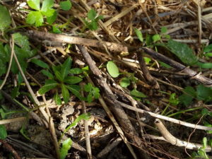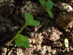 (右)これが昨年植えた処に出たノースポールの零れ種で発芽したものです。