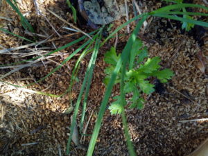 (左)これはノースポールの零れ種じゃないかなぁ。キク科は春菊に見えてしまいます。牛もつに春菊が合うんですね。